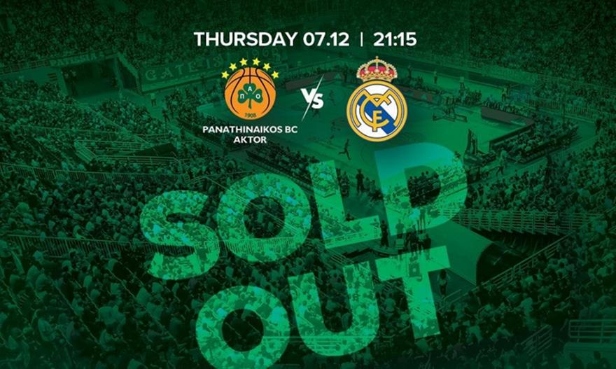 «Η ΚΑΕ Παναθηναϊκός AKTOR ενημερώνει τους φίλους της ομάδας πως εξαντλήθηκαν τα εισιτήρια για την αναμέτρηση με αντίπαλο τη Real Madrid (07/12, 21:15) στο ΟΑΚΑ, στο πλαίσιο της 13ης αγωνιστικής της κανονικής περιόδου της Euroleague.