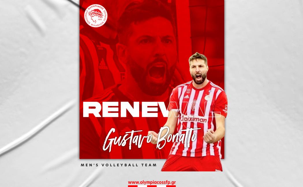 Ο ΟΛΥΜΠΙΑΚΟΣ Σ.Φ.Π. ανακοινώνει την ανανέωση της συνεργασίας του με τον Γκουστάβο Γκουαζέλι Μπονάτο (Γκουσταβάο). Ο Βραζιλιάνος κεντρικός υπέγραψε το νέο του συμβόλαιο και παραμένει στο ρόστερ της ομάδας βόλεϊ Ανδρών του συλλόγου.