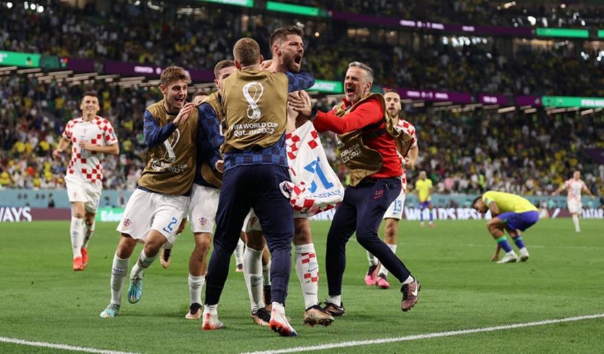 Επτάψυχη Κροατία, έστειλε σπίτι της τη Βραζιλία! Η «χρβάτσκα» δεν μάσησε από την ιστορική γκολάρα του Νεϊμάρ στο 105’+1’ της παράτασης (σσ. 0-0 καν. διάρκεια), βρήκε την απάντηση με τον Πέτκοβιτς στο 117’ και έστειλε το ματς εκεί που ήθελε, δηλαδή στα πέναλτι!Στη ρώσικη ρουλέτα και με τον Λιβάκοβιτς ήρωα και πάλι, αφού έβγαλε το πρώτο πέναλτι της «σελεσάο» και του Ροντρίγκο, στη συνέχεια ο Μαρκίνιος βρήκε… δοκάρι και η Κροατία με το 4/4 από την βούλα, πήρε το εισιτήριο για τα ημιτελικά!Δεύτερη σερί διοργάνωση που φτάνει στους «4» η απίθανη Κροατία, περιμένει πλέον την Ολλανδία ή την Αργεντινή! Αποχαιρέτησε από νωρίς, αν αναλογιστεί κανείς πως την θεωρούσαν φαβορί, τη διοργάνωση η Βραζιλία που πλήρωσε τη χαλαρότητά της στην παράταση!Στο μυαλό του κόουτςΜε 4-3-3 κατέβασε την Κροατία ο Ζλάτκο Ντάλιτς. Ο Λιβάκοβιτς στην εστία και οι Γιουράνοβιτς, Λόβρεν, Γκβάρντιολ, Σόσα στην άμυνα. Οι Μπρόζοβιτς, Κόβατσιτς, Μόντριτς στην τριάδα του άξονα, με τους Πάσαλιτς, Πέρισιτς να πλαισιώνουν τον Κράμαριτς στην επίθεση.Με 4-2-3-1 παρέταξε την Βραζιλία ο Τίτε. Ο Άλισον στο τέρμα και οι Μιλιτάο, Μαρκίνιος, Τιάγκο Σίλβα, Ντανίλο στην τετράδα της άμυνας. Κασεμίρο, Πακετά τα δύο χαφ, με τους Ραφίνια, Νεϊμάρ, Βινίσιους στη μεσοεπιθετική τριπλέτα και τον Ρισάρλισον στην κορυφή της επίθεσης.Το ματςΜε σκοπό να κοντρολάρει το τέμπο, όπως και έγινε, περιορίζοντας το κάθε παιχνίδι της Βραζιλίας μπήκε η Κροατία στον αγωνιστικό χώρο. Πέραν της τελικής του Βινίσιους που μπλόκαρε ο Λιβάκοβιτς (5’), η «σελεσάο» ήταν αρκετά ακίνδυνη και δεν έβρισκε χώρους για συνδυαστικό ποδόσφαιρο, με αποτέλεσμα η ομάδα του Ντάλιτς να ελέγχει τον αγώνα χάρη στην τριπλέτα του άξονα (Μπρόζοβιτς, Κόβατσιτς, Μόντριτς). Ο Πέρισιτς δεν κατάφερε στο 13’ να εκμεταλλευτεί τη σέντρα-ξυραφιά του Πάσαλιτς, ενώ ένα λεπτό αργότερα το γύρισμα του Μόντριτς δεν βρήκε συμπαίκτη. Το ματς άρχισε να «σκληραίνει» για ένα διάστημά του (20’-30’) με Ντανίλο και Μπρόζοβιτς να «κιτρινίζονται», με τον ρυθμό να πέφτει κατακόρυφα στο φινάλε και το 0-0 να μένει ως το τελευταίο σφύριγμα του διαιτητή.Με μεγάλη φάση για τη Βραζιλία ξεκίνησε το δεύτερο μέρος, όταν ο Γκβάρντιολ λίγο έλειψε να σκοράρει στην εστία του Λιβάκοβιτς ο οποίος έδιωξε με τα πόδια. Στα… καπάκια οι Βραζιλιάνοι φώναξαν για πέναλτι αλλά το VAR υπέδειξε οφσάιντ τον Νεϊμάρ στη φάση, με τον Νεϊμάρ να βλέπει τον αντίπαλο κίπερ να τον σταματάει δις σε πλάγια τετ-α-τετ, όπως και τον Πακετά. Η ομάδα του Τίτε είχε ανεβάσει τις γραμμές της και την πίεσή της, με τους Κροάτες να δείχνουν πως είχαν αρχίσει να κουράζονται (έχοντας παίξει παράταση προ ημερών με την Ιαπωνία) και έκαναν διαχείριση του ματς. Κατάφεραν τελικά να το στείλουν εκεί που ήθελαν, στην παράταση δηλαδή με το 0-0 να παραμένει ως το φινάλε. Χωρίς ρίσκα και με διάθεση να πάνε… λάου-λάου το ματς ξεκίνησαν την παράταση οι δύο ομάδες, με την Κροατία στο 103’ να φτιάχνει μεγάλη φάση για να προηγηθεί αλλά ο Μπρόζοβιτς έκανε κακό τελείωμα μετά το γύρισμα του Πέτκοβιτς. Κάτι που πλήρωσαν οι Κροάτες, αφού οι Βραζιλιάνοι θυμήθηκαν τις… αρχές τους, οι Νεϊμάρ, Ροντρίγκο, Πακετά έκρυψαν την μπάλα και ο πρώτος αφού πέρασε και τον Λιβάκοβιτς την εμφάνισε στα δίχτυα για το 1-0 στο 105’+1’. Τα πάντα κρέμονταν πλέον σε μια κλωστή, με την Κροατία στο δεύτερο μέρος της παράτασης να μπαίνει δυνατά αλλά μετά το πρώτο πεντάλεπτο να αρχίζει να πέφτε