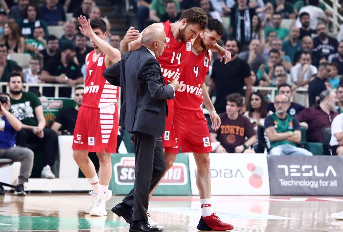 Ο MVP του φετινού Ολυμπιακού και της Ευρωλίγκα αποχώρησε υποβασταζόμενος το παρκέ του ΟΑΚΑ και με πόνους στο γόνατο έπειτα από πτώση του στην ρακέτα του Παναθηναϊκού στο 27’ . Με άμεση συνέπεια η αγωνία όλων στο στρατόπεδο των νταμπλούχων Ελλάδας να είναι έκδηλη.