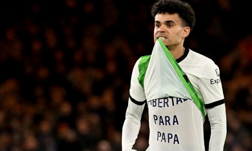 Συγκλόνισε μετά το τέρμα που σημείωσε ο Κολομβιανός, καθώς μέσα από τη φανέλα του φορούσε μια μπλούζα αφιερωμένη στον πατέρα του, που έχει πέσει θύμα απαγωγής.