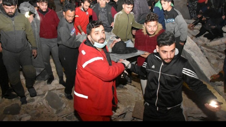 Στη Χάμα, στην κεντροδυτική Συρία, διασώστες και πολίτες έβγαλαν με τα χέρια πτώματα από ένα κτίριο. Μεταξύ αυτών ήταν και ένα παιδί. Στη Τζανταρίς, βορειότερα, ένας άνδρας, καταβεβλημένος, θρηνεί για τον θάνατο του γιου του, ενός μικρού αγοριού, που στον σφίγγει στην αγκαλιά του αρνούμενος να τον αποχωριστεί. Τουλάχιστον 40 σπίτια έπεσαν σαν χάρτινοι πύργοι σε αυτήν την κοινότητα, στα σύνορα με την Τουρκία.
