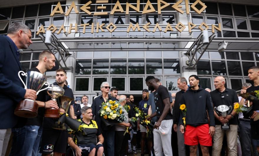 Στο σημείο έγινε παρέλαση των τροπαίων τα οποία κατέκτησε με τον Άρη κατά τη διάρκεια της παρουσίας του στο τιμόνι των «κίτρινων».