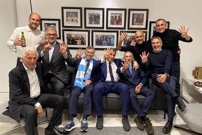 Τη φωτογραφία ανέβασε στα social media ο Μανέλ Εστιάρτε, μέλος του τεχνικού τιμ του Γκουαρντιόλα (και άλλοτε μεγάλος πολίστας). Στην ίδια φωτογραφία βλέπουμε-μεταξύ άλλων-τον αδερφό του Πεπ, τον άλλοτε πρόεδρο της Αργεντινής Μαουρίτσιο Μάκρι και τον πρόεδρο τη Σίτι, Χαλντούν Αλ Μουμπάρακ.