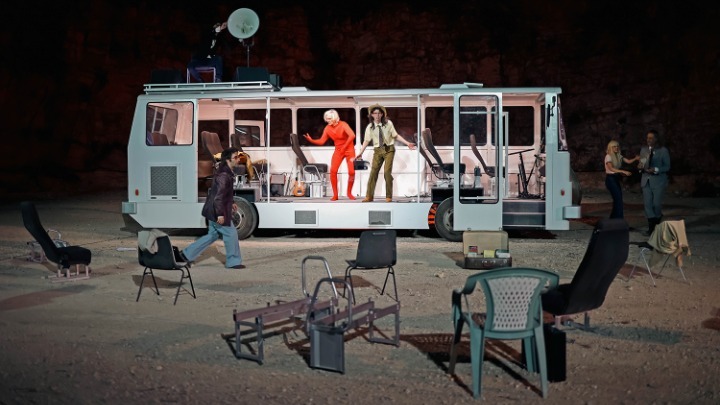 Η ιδέα της συνύπαρξης που κυριαρχεί στο έργο του Φιλίπ Κεν, εκφράζεται μέσα και από τον σκηνικό διάκοσμο της παράστασης: ένας αυτοσχέδιος καταυλισμός, μια ομάδα ηθοποιών σαν παιδιά των λουλουδιών της δεκαετίας του '70, ένα λεωφορείο, άνθρωποι που βιώνουν μια κοινοβιακή κατάσταση.