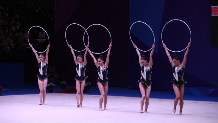 Η ελληνική ομάδα (Εΐρα Λάουρα Γκικόκα, Ελπίδα Εγγλέζου, Καλομοίρα Καρόκη, Χριστίνα Ρήγα, Μαριέττα Τοπολλάι) συγκέντρωσε 32,100 βαθμούς στα 5 στεφάνια και κατετάγη 5η στο αγώνισμα, σφραγίζοντας την πρόκριση για τον καταληκτικό αγώνα σε δύο 24ωρα.
