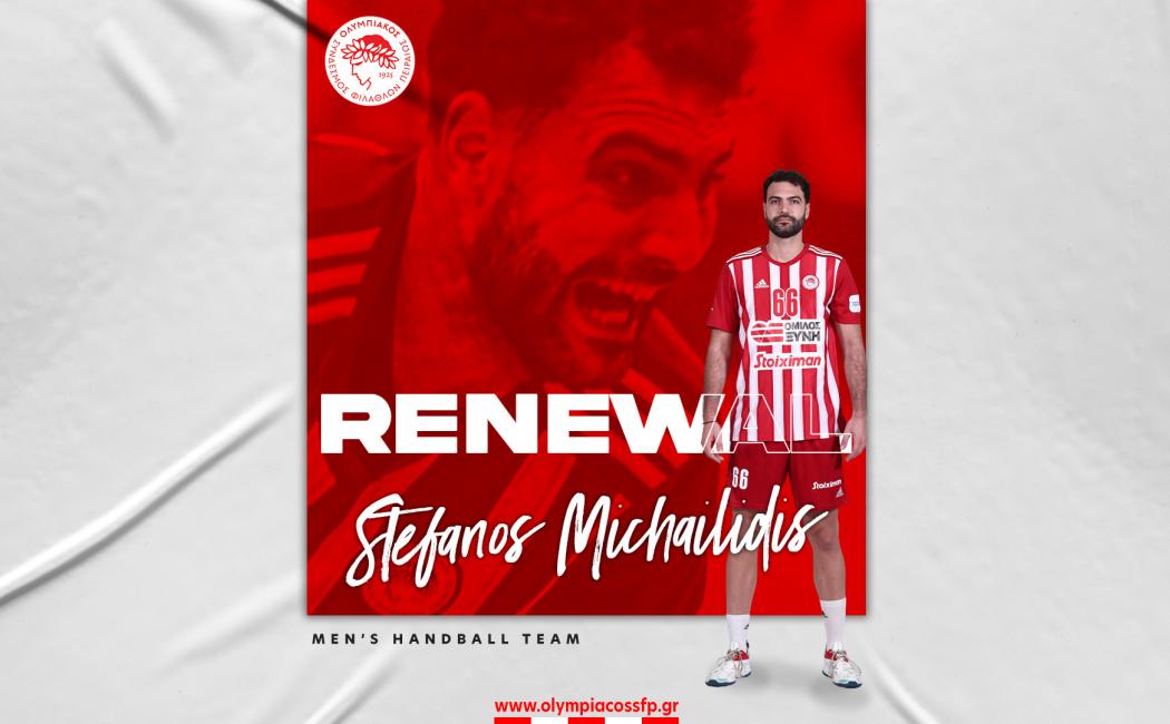 «Ο ΟΛΥΜΠΙΑΚΟΣ Σ.Φ.Π. ανακοινώνει την ανανέωση της συνεργασίας του με τον Στέφανο Μιχαηλίδη. Ο διεθνής πίβοτ υπέγραψε το νέο του συμβόλαιο και παραμένει στο ρόστερ της ομάδας χάντμπολ του συλλόγου.