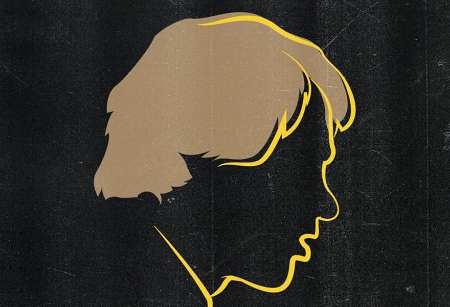 Σε μαύρο φόντο αποτυπώνεται η φιγούρα του προσώπου του Γιάννη Ιωαννίδη, με το χαρακτηριστικό ξανθό μαλλί.