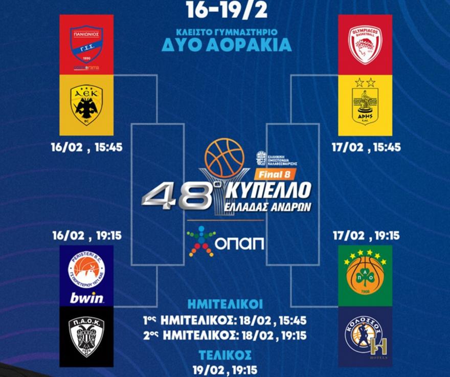 Το πρόγραμμα του Final 8 Κυπέλλου: Στις 19:15 ο ημιτελικός «αιωνίων» και ο τελικός