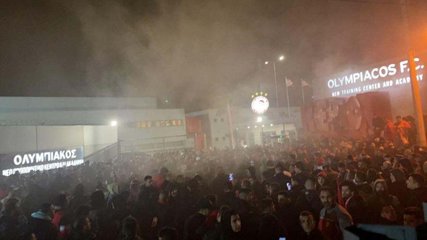 Από νωρίς, ο κόσμος τραγουδάει συνθήματα με… κεντρικό μήνυμα το αίτημα για κατάκτηση του τίτλου. Φυσικά, μόλις εμφανίστηκε η αποστολή του Ολυμπιακού έγινε χαμός, με καπνογόνα και συνθήματα να δημιουργούν εκρηκτική ατμόσφαιρα
