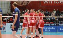 Την πρόκρισή του στα προημιτελικά του ChallengeCupπανηγύρισε η ομάδα βόελϊ Ανδρών του Ολυμπιακού καθώς κατέκτησε τα δύο πρώτα σετ απέναντι στην Μπουργκάς.