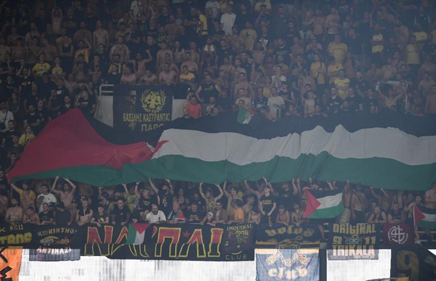 Το κατηγορητήριο για την ΑΕΚ κάνει λόγο για πυροτεχνήματα, χρήση λέιζερ, ρίψη αντικειμένων, κλειστούς διαδρόμους και «μετάδοση μηνύματος που δεν συνάδει σε αθλητική διοργάνωση», για τη στήριξη των οπαδών της στο λαό της Παλαιστίνης με σημαίες και συνθήματα.