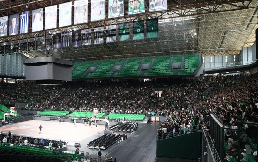 Ο κόσμος συνεχίζει να καταφθάνει, έχοντας γεμίσει ουσιαστικά το κάτω διάζωμα στο κλειστό του ΟΑΚΑ, με τους φίλους της ομάδας να ξεπερνούν τις 12.000.