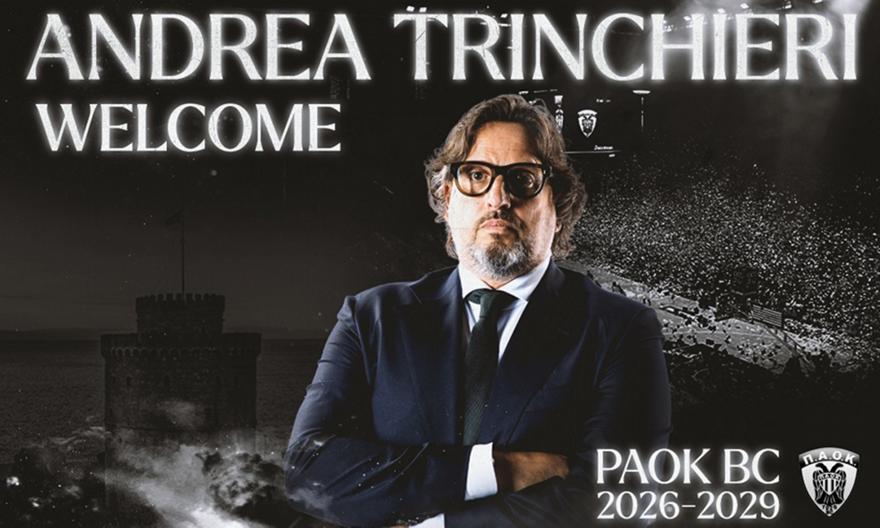 Η ΚΑΕ ΠΑΟΚ ανακοινώνει τη συμφωνία με τον Andrea Trinchieri, ο οποίος θα αναλάβει την τεχνική ηγεσία της ομάδας μας από την αγωνιστική περίοδο 2026-2027 και για τα επόμενα τρία χρόνια.