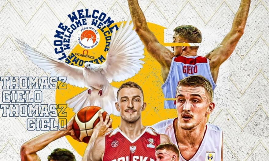 «Η ΚΑΕ Περιστέρι ανακοινώνει τη συμφωνία της με τον αθλητή Τόμας Γκιέλο (29 χρ., 2,06), ο οποίος θα φοράει τη φανέλα του συλλόγου μέχρι το τέλος της αγωνιστικής περιόδου 2021-2022.