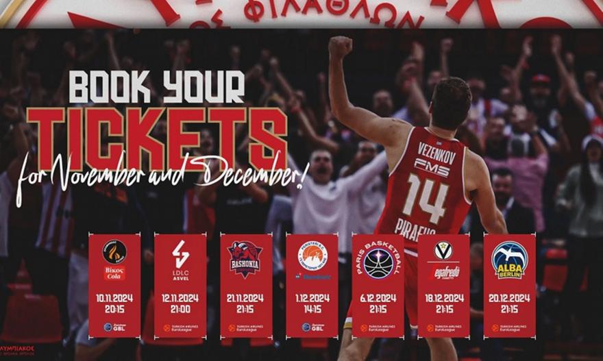 Για την καλύτερη εξυπηρέτηση και προγραμματισμό των φιλάθλων, η Κ.Α.Ε. ΟΛΥΜΠΙΑΚΟΣ ανακοινώνει ότι την Τετάρτη 06/11/2024 και ώρα 12:00 θα ξεκινήσει η διάθεση εισιτηρίων για τους αγώνες των μηνών Νοεμβρίου - Δεκεμβρίου.