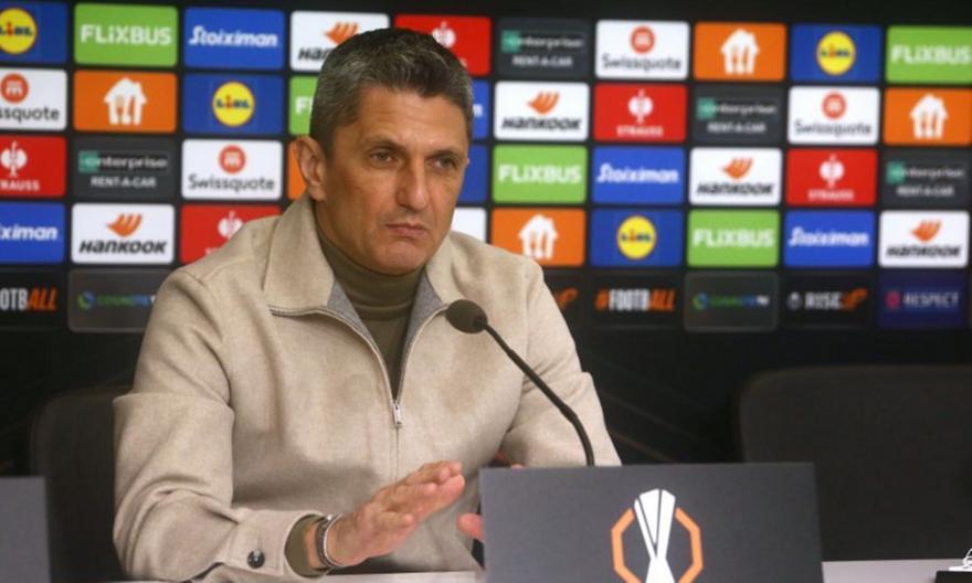Ο Ρουμάνος προπονητής ξεκαθάρισε ότι η ομάδα του θα τα δώσει όλα, έτσι ώστε να κάνει το πρώτο και σημαντικό βήμα προς την πρόκριση στους «16» της διοργάνωσης, εξήγησε τις επιλογές που έκανε όσον αφορά την κατάρτιση της ευρωπαϊκής λίστας, ενώ συνέκρινε τις αναμετρήσεις με τη Στεάουα, με τα ντέρμπι του ελληνικού πρωταθλήματος.