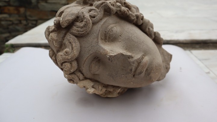Μεταξύ των ευρημάτων που ξεχώρισαν ήταν η ανακάλυψη μιας ωραίας κεφαλής αγάλματος του 2ου ή αρχών του 3ου αι. μ.Χ. «που ανήκει σε μορφή αγένειου ανδρός με πλούσια κόμη την οποία επιστέφει ένα στεφάνι από φύλλα δάφνης» και η οποία «φαίνεται πως ανήκει σε άγαλμα του θεού Απόλλωνα».