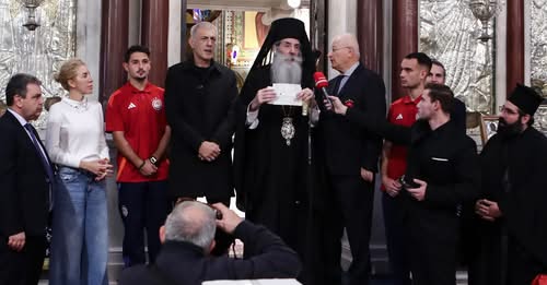 Παράλληλα, ο κ. Βασιλειάδης έδωσε εκ μέρους του κ. Μαρινάκη χρηματικές επιταγές στον Σεβασμιώτατο Μητροπολίτη Πειραιώς κ. Σεραφείμ, για την οικονομική ενίσχυση του έργου της Ιεράς Μητρόπολης Πειραιώς.