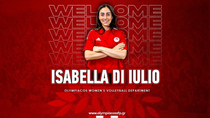 «Γεια σας. Είμαι η Ιζαμπέλα Ντι Ιούλιο, νέα αθλήτρια της ομάδας του Ολυμπιακού. Είμαι πολύ χαρούμενη που γίνομαι μέλος σε αυτή την οικογένεια! Θα απολαύσουμε τη νέα σεζόν. Ξεκουραστείτε, μαζέψτε ενέργεια, για να είμαστε έτοιμοι για τη νέα σεζόν», ήταν η πρώτη δήλωση της αθλήτριας.