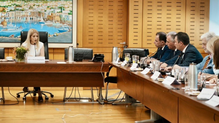 Γραμματέας της Κ.Ο. της Νέας Δημοκρατίας Βουλευτής Α΄ Θεσσαλονίκης Σταύρος Καλαφάτης κατά τη διάρκεια της συνάντησης που είχε σήμερα με την Πρόεδρο της Βουλής των Αντιπροσώπων κ. Αννίτα Δημητρίου, κοινοβουλευτική αντιπροσωπεία της Βουλής των Ελλήνων με επικεφαλής τον Β΄ Αντιπρόεδρο της Βουλής κ. Γεώργιο Γεωργαντά, που βρίσκεται στην Κύπρο για τις εκδηλώσεις των 50 χρόνων από τις Μαύρες Επετείους του 1974.