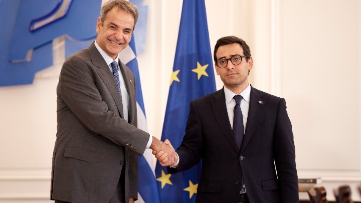 Ο πρωθυπουργός Κυριάκος Μητσοτάκης δέχθηκε στο Μέγαρο Μαξίμου τον υπουργό Εξωτερικών της Γαλλίας, Στεφάν Σεζουρνέ και συζήτησαν το εξαιρετικό επίπεδο των ελληνογαλλικών σχέσεων, ενώ αντηλλάγησαν απόψεις για τις προτεραιότητες του νέου ευρωπαϊκού κύκλου, με αιχμή την ανταγωνιστικότητα της Ευρωπαϊκής Ένωσης και την κοινή ευρωπαϊκή άμυνα.