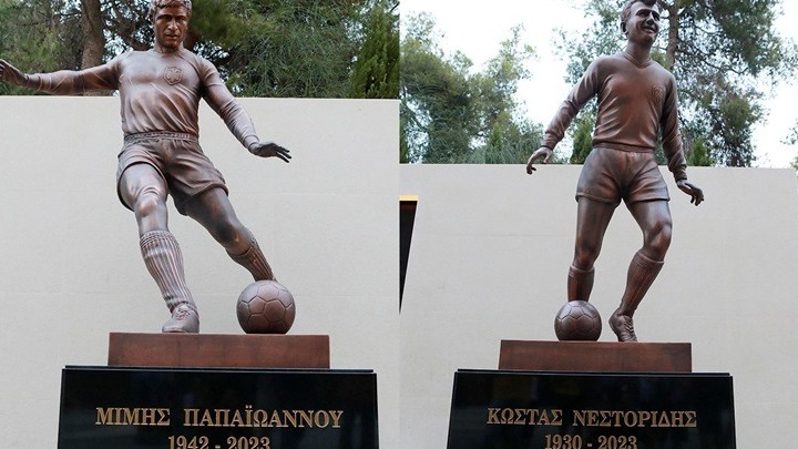 «Ο Κώστας Νεστορίδης και ο Μίμης Παπαϊωάννου δεν μας κοιτούν μόνο από ψηλά. Δεν μας κοιτούν μόνο από τους πυλώνες της OPAP ARENA. Από σήμερα έχουν το βλέμμα τους στραμμένο προς το γήπεδο της ΑΕΚ, αφού αποκαλύφθηκαν τα αγάλματά τους έξω από τη θύρα VIP.