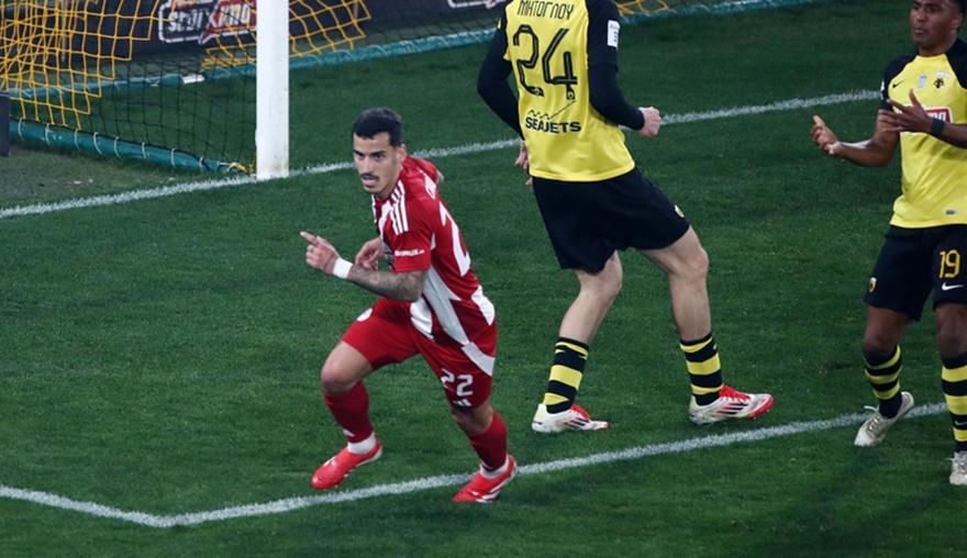 Χαρούμενος για το γκολ του, αλλά κυρίως για το τρίποντο που έφερε τον Ολυμπιακό στο +5 από την ΑΕΚ εμφανίστηκε ο Τσικίνιο.