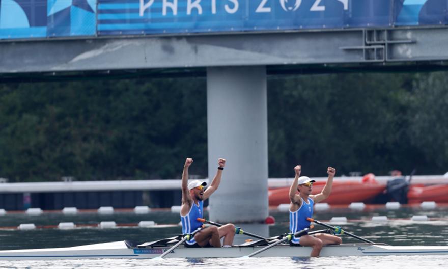 Τα ελληνικά κουπιά στο σκιφ ελαφρών βαρών ανέβηκαν στο τρίτο σκαλί του βάθρου, με τους δύο Έλληνες κωπηλάτες να πραγματοποιούν εκπληκτική κούρσα στον μεγάλο τελικό του αγωνίσματος, κατακτώντας το χάλκινο μετάλλιο με χρόνο 6:13.44!