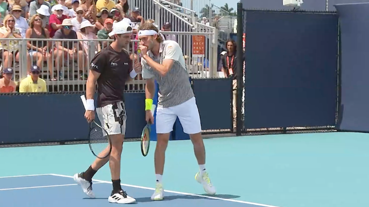 Ιδανικότερη συνεργασία δεν θα μπορούσαν να ονειρευτούν στην πρεμιέρα τους στο διπλό του Miami Open οι Στέφανος Τσιτσιπάς και Θανάσης Κοκκινάκης. Χρειάστηκαν μόλις 64 λεπτά για να επικρατήσουν με 2-0 επί των Αυστραλών Άλεξ ντε Μινόρ και Ρίνκι Χιτσικάτα (6-3, 6-4) και να προκριθούν στον 2ο γύρο του τουρνουά.