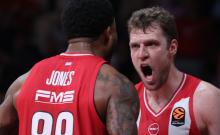 Ο MVP της αναμέτρησης Σάσα Βεζένκοφ τόνισε πως οι παίκτες του Ολυμπιακού έπρεπε να βγάλουν ενέργεια για να νικήσουν τον Ερυθρό Αστέρα, χαρακτήρισε ταλαντούχα ομάδα τους Σέρβους, στάθηκε στη δική του αστοχία και στον εκνευρισμό που του προκάλεσε, αλλά και στο ότι μέτρησε η ομαδική δουλειά στο τέλος.