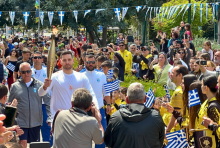 Σε κλίμα συγκίνησης και παρουσία πλήθος κόσμου η Ολυμπιακή Φλόγα έφτασε στο Πάρκο Μικρασιατών από τα χέρια του αρχηγού της ομάδας χάντμπολ της ΑΕΚ.
