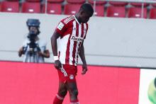 Ο Αφρικανός στόπερ των «ερυθρόλευκων» αποχώρησε με ενοχλήσεις μετά από ένα μαρκάρισμα του Γιακουμάκη, παραχωρώντας στο 11’ τη θέση του στον Σωκράτη Παπασταθόπουλο να περνάει στη θέση του.