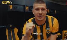 «Φτιαγμένος» με τη μεταγραφή του στην ΑΕΚ και έτοιμος για πολλά γκολ με τα κιτρινόμαυρα εμφανίστηκε στις πρώτες του δηλώσεις ο Σέρβος φορ.