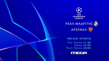Η φάση των «8» του UEFA Champions League ολοκληρώνεται με μια δυνατή ποδοσφαιρική μάχη. Τη Μ. Τετάρτη 16 Απριλίου, το MEGA φέρνει ζωντανά στις οθόνες μας τη μεγάλη ρεβάνς της Ρεάλ Μαδρίτης με την Άρσεναλ, στις 22:00. ...